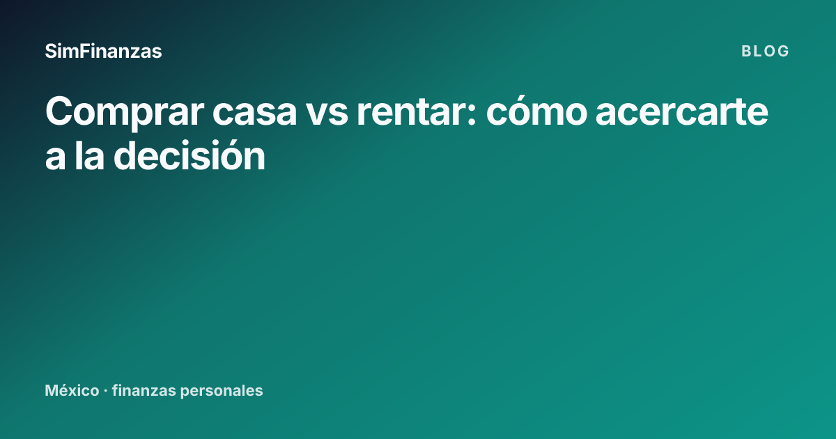 Si quieres bajar esto a cifras concretas con tus datos, en SimFinanzas tenemos una herramienta gratuita: Comprar casa vs rentar. Ahí puedes poner precio de la vivienda, enganche, tasa y plazo del crédito, el horizonte en años y, si quieres, una renta distinta a la mensualidad del banco; también puedes ajustar crecimiento de renta y apreciación para ver cómo cambia la comparación. Es un apoyo para explorar “qué pasaría si…”, no una recomendación personalizada.